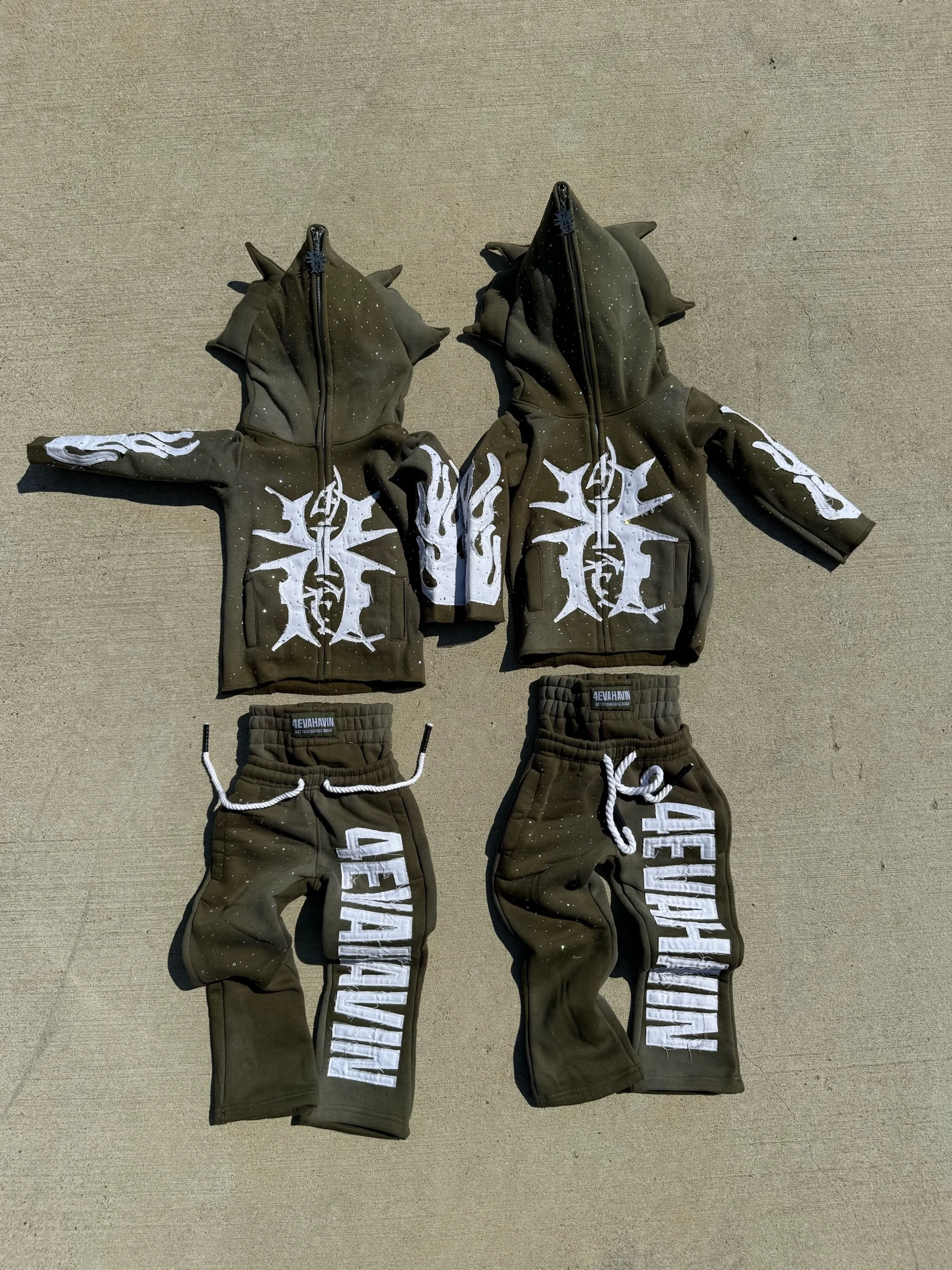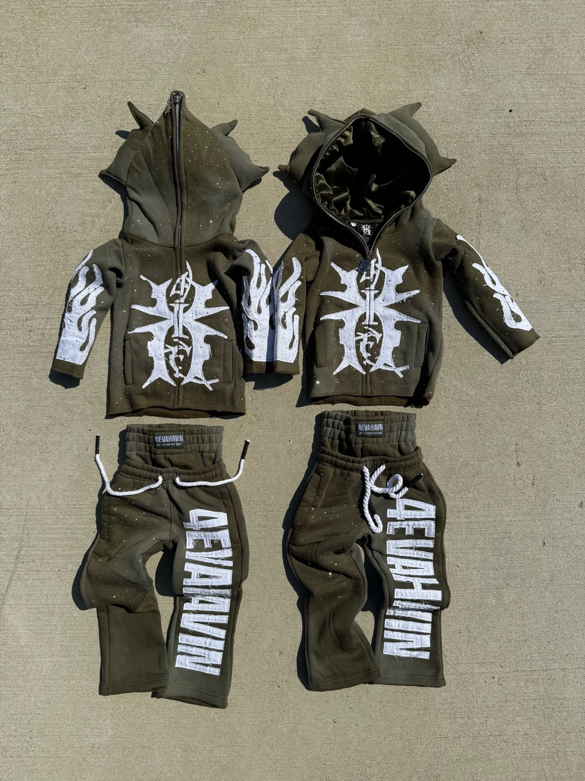 “PREORDER “ ADULTS DEMOGORDON OLIVE GREEN DOUBLE WAISTED FULL ZIP